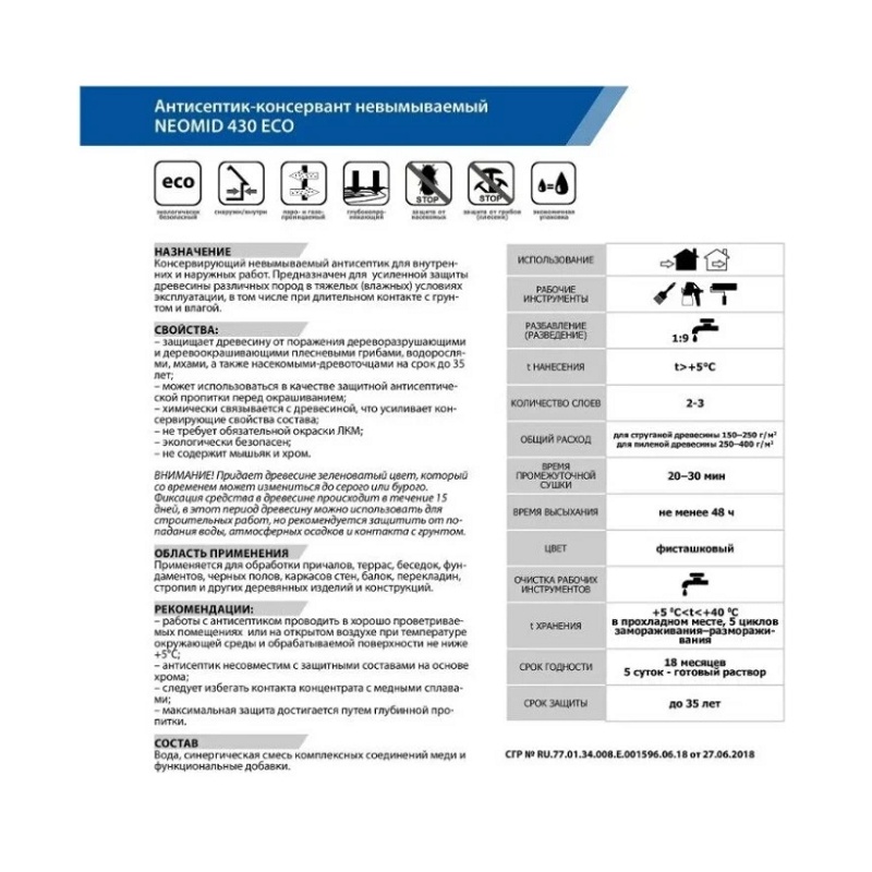 Антисептик концентрат 1:9 Neomid 430 Еco невымываемый (5 кг)