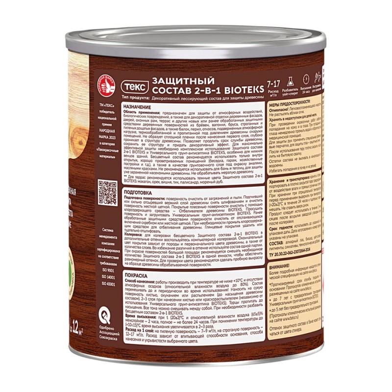 В строительном магазине Сатурн можно купить товар "Антисептик Текс Bioteks состав 2в1 орех (0,8 л)" по цене от 503 руб с доставкой за 4 часа по Подольску или оформить самовывоз.