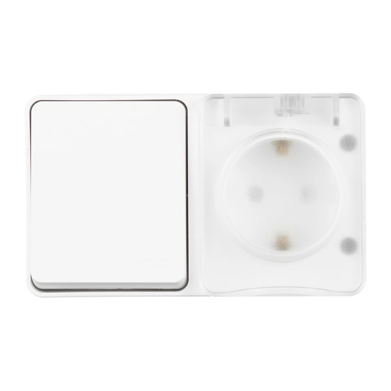 Блок БКВР с/у Atlasdesign Profi ATN544070, 1 клавиша + 1 гнездо с/з, з/ш и крышкой, IP54, белый