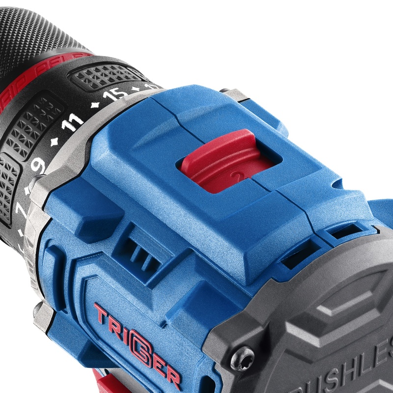 Дрель-шуруповерт Trigger 20121 - мощный бесщеточный шуруповерт с единой аккумуляторной платформой. Отсутствие щеточного узла приводит к уменьшению размера инструмента и увеличивает ресурс двигателя. Металлический 13 мм патрон с функцией Autofix позволяет заменять оснастку одной рукой и определять усилие ее фиксации по характерным щелчкам, а также использовать оснастку больших размеров.
