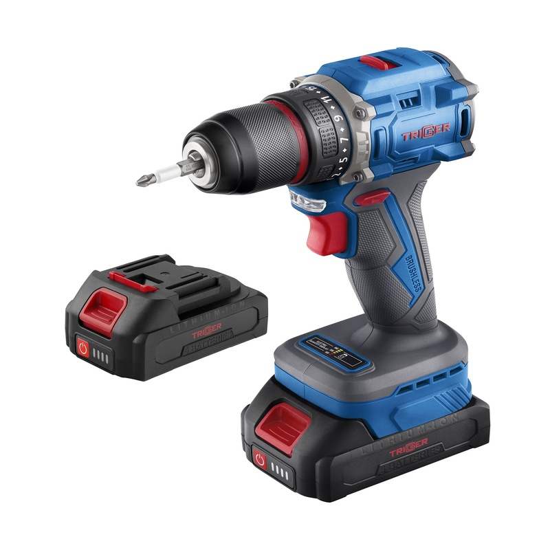Дрель-шуруповерт Trigger 20121, бесщеточная, 2 аккумулятора Li-ion (2Ач), 18V, 13 мм, 58 Нм, кейс