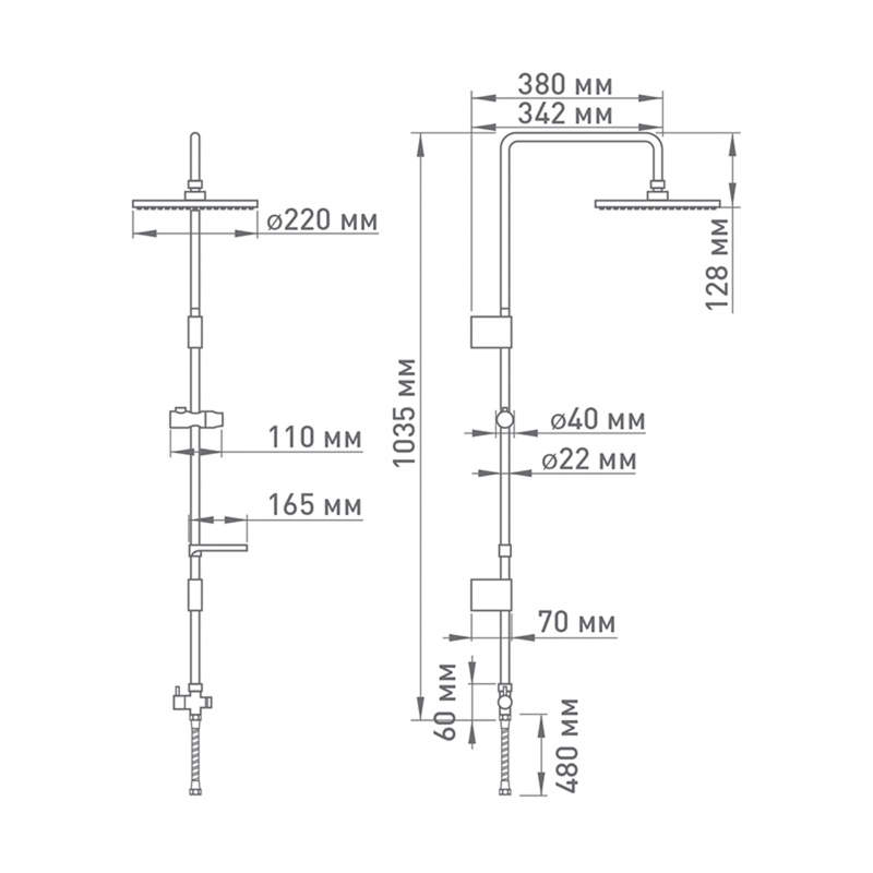 Гарнитур душевой Mix&Fix 0500, без смесителя, лейка 220 мм