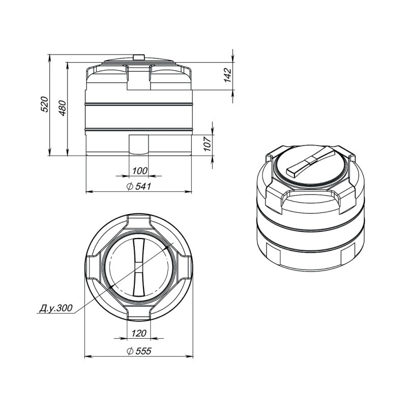 Емкость ЭкоПром для воды полиэтиленовая 100 л (0,1 м3) вертикальная