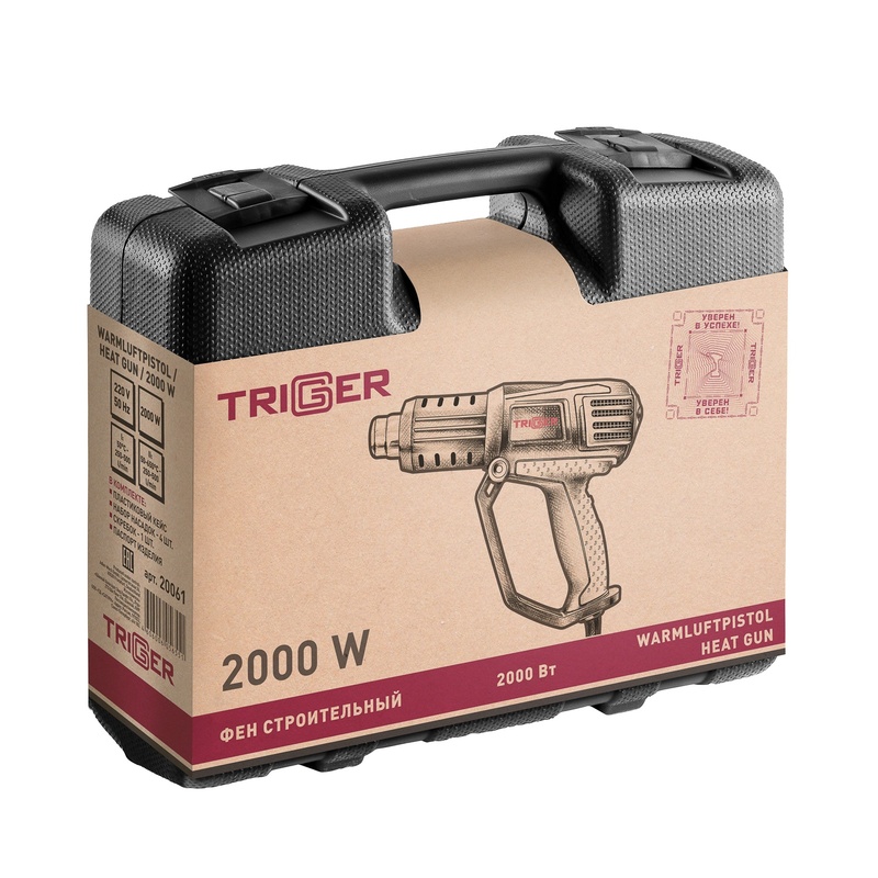 Фен строительный сетевой Trigger 20061, 2 кВт, 50-600°, 4 насадки, L кабеля=3 м, кейс в Подольске