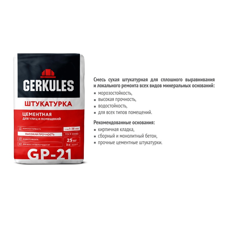 Штукатурная смесь Gerkules GP-21, 25 кг