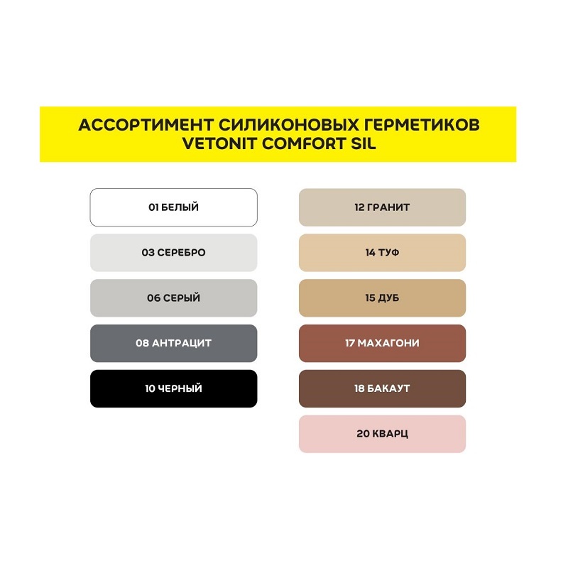 Важно! Герметик Vetonit Comfort Sil обладает усиленным противогрибковым действием, содержит фунгицид, поэтому не подходит для герметизации аквариумов.