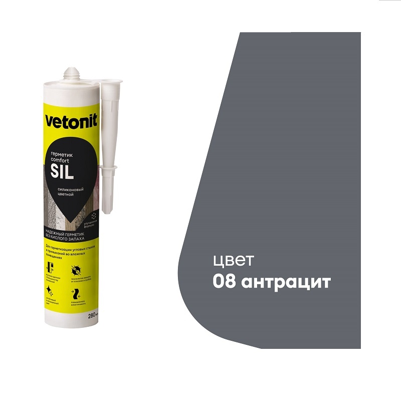 Герметик силиконовый Vetonit Comfort Sil антрацит 08 (280 мл)
