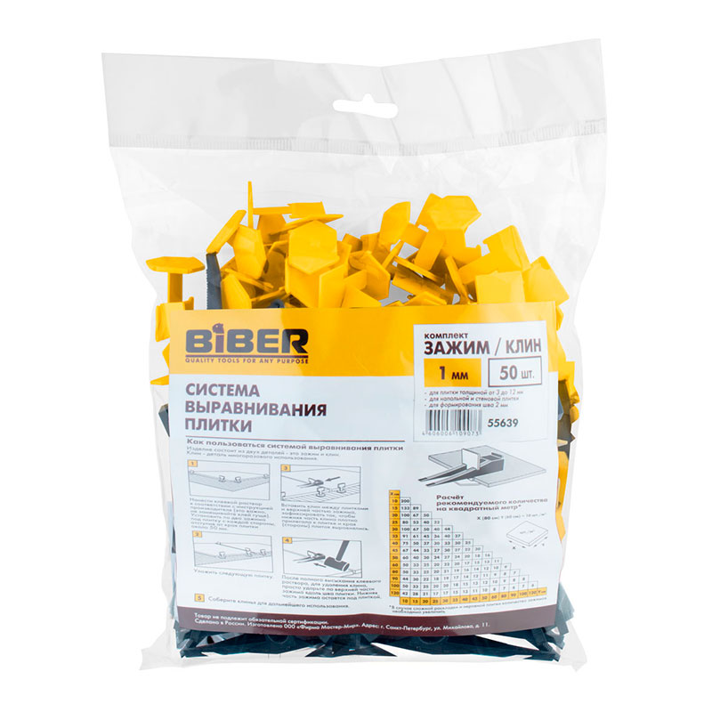 Комплект СВП Biber 55639 зажим (флажок) и клин 1 мм (по 50 шт.)