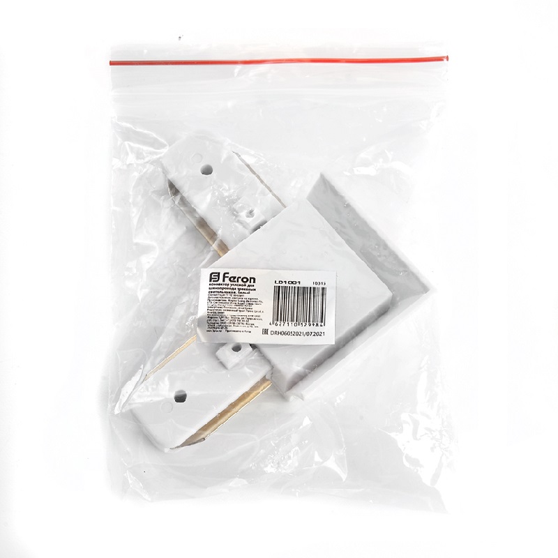 Коннектор L-образный (угловой) для накладного 1ф шинопровода, белый