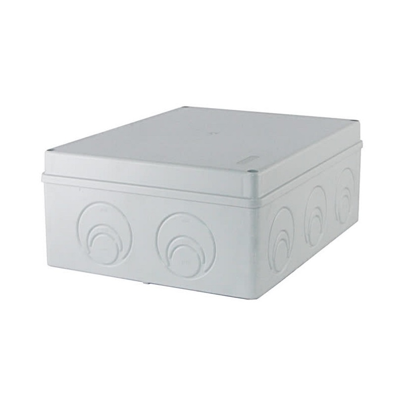 Коробка разветвительная накладная, 240х195х90 мм, 12 вводов, серая IP55 предназначена для: разветвления проводов и кабелей при открытом монтаже, а также для скрытия и дополнительной защиты мест коммуникации.