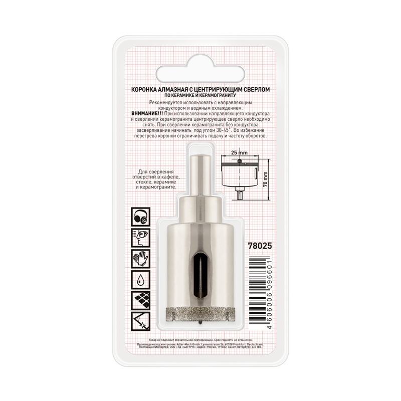 В строительном магазине Сатурн можно купить товар "Коронка алмазная Trigger 78025 25х70мм" по цене от 944 руб с доставкой за 4 часа по Подольску или оформить самовывоз.