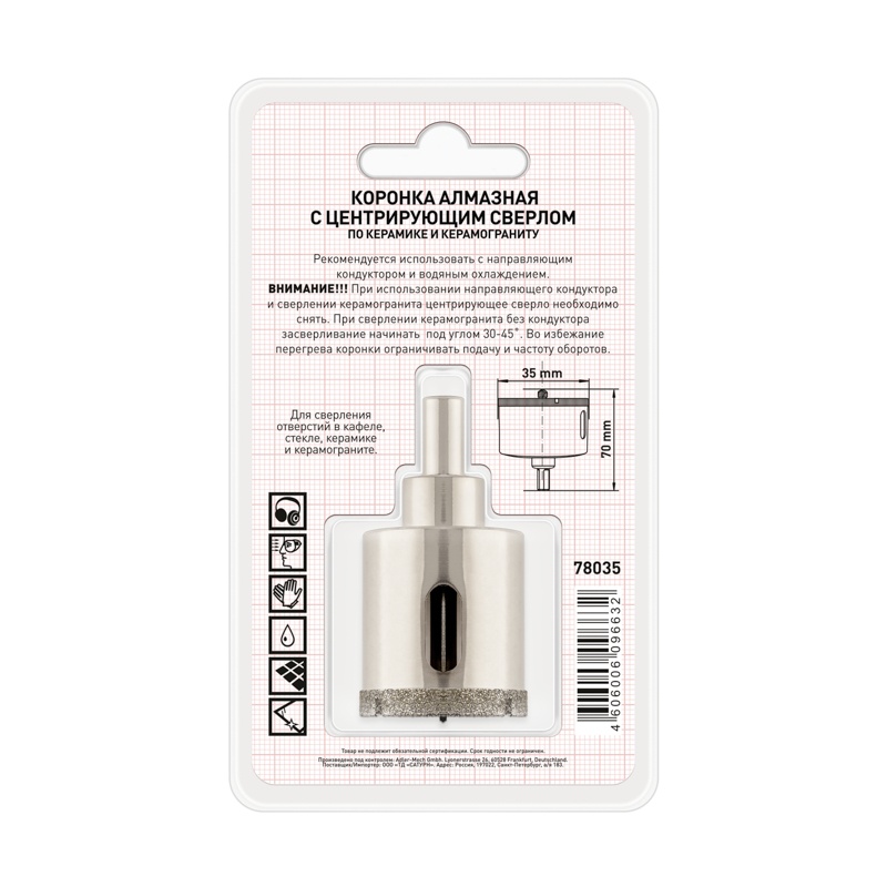 В строительном магазине Сатурн можно купить товар "Коронка алмазная Trigger 78035 35х70мм" по цене от 1243 руб с доставкой за 4 часа по Подольску или оформить самовывоз.