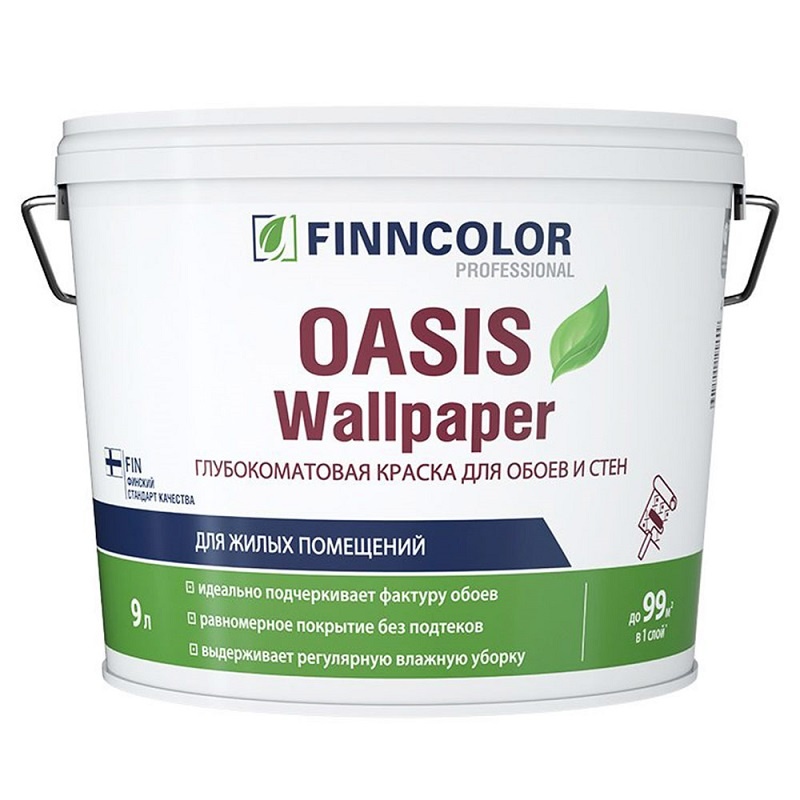 Краска для обоев и стен Finncolor Oasis Wallpaper A глубоко матовая (9 л)