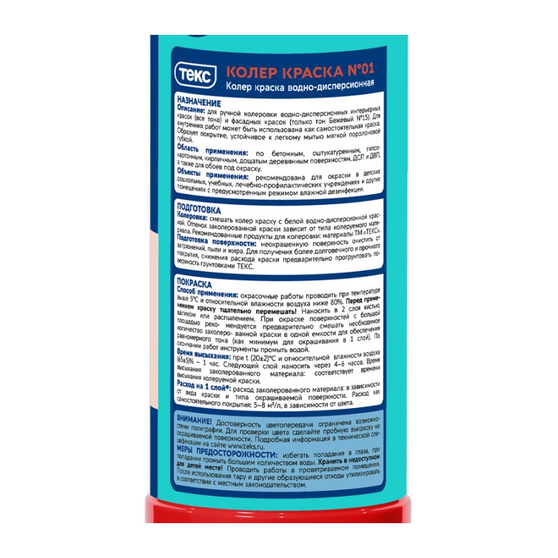Краска колеровочная для в/д красок Текс N01 красная (0,75л)