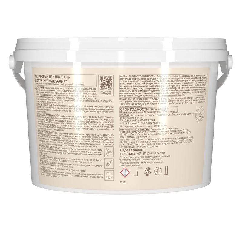 В строительном магазине Сатурн можно купить товар "Лак для бань и саун Neomid Sauna водоразбавляемый (2,5 л)" по цене от 1553 руб с доставкой за 4 часа по Подольску или оформить самовывоз.