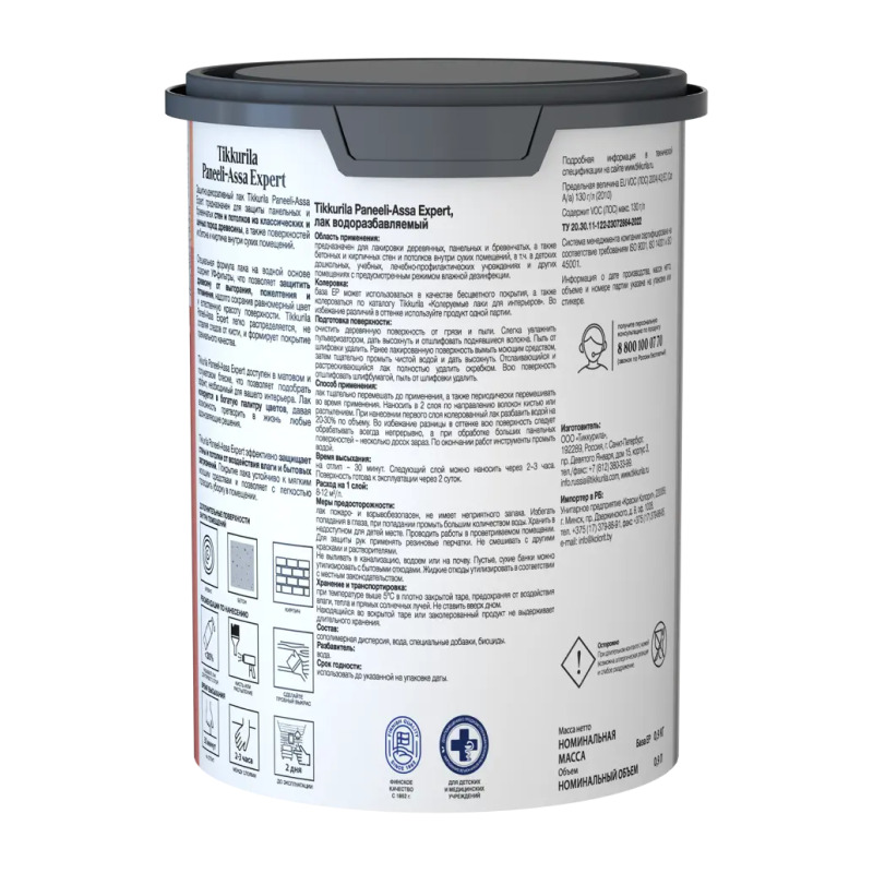 Лак в/д интерьерный для стен Tikkurila/Tikkivala Panelli-Assa Expert ЕР мат. (0,9 л) в Подольске