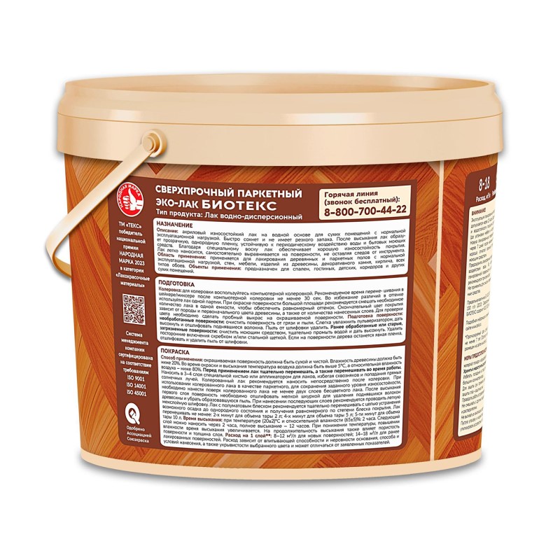 Эко-Лак водоразбавляемый паркетный Текс Биотекс, полуматовый (2 л)
