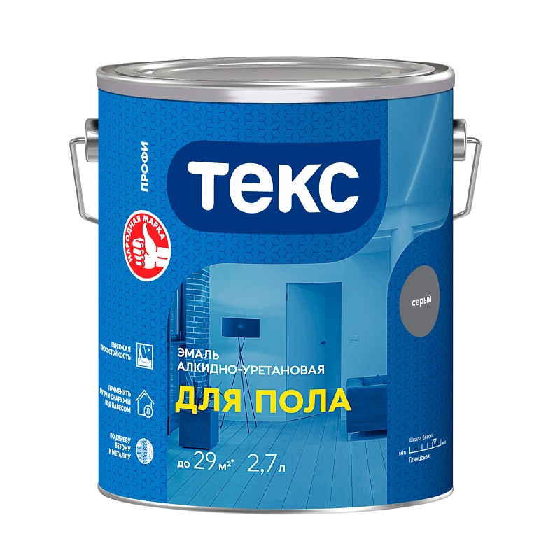 Эмаль для бетонных полов Текс Профи серая (2,7 л)
