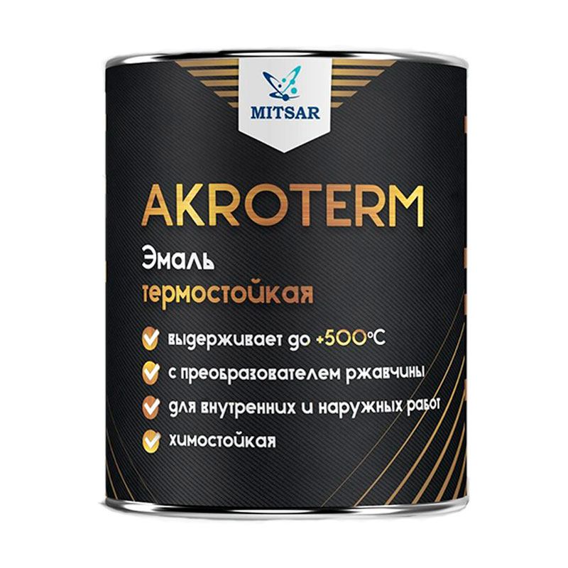 Эмаль термостойкая Mitsar Аkroterm чёрная (0,8 кг)