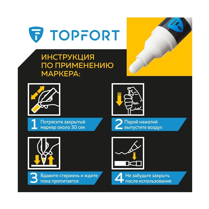 - Перед использованием интенсивно встряхните маркер с закрытым колпачком.