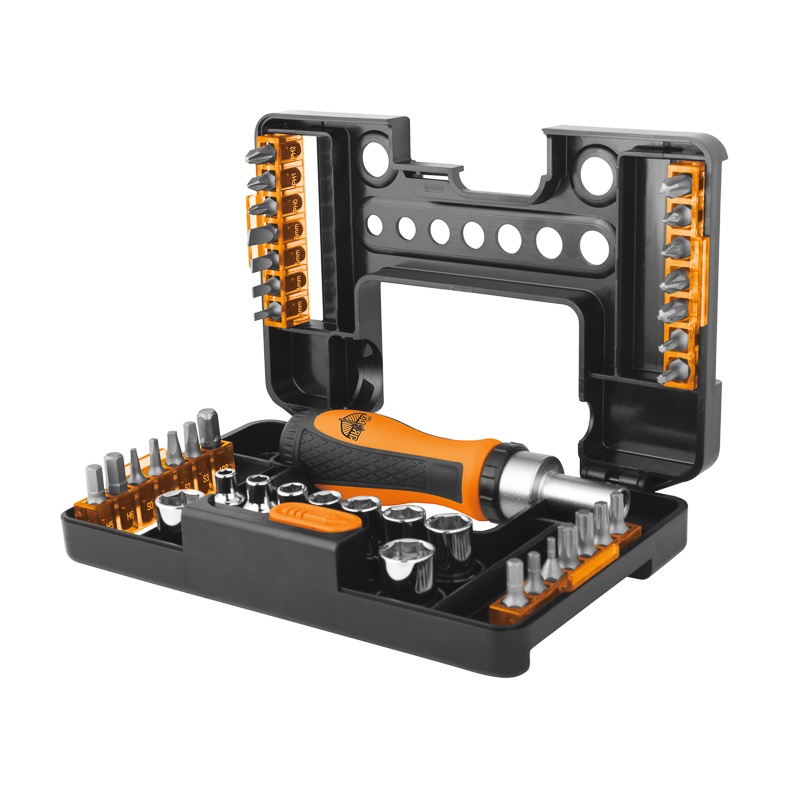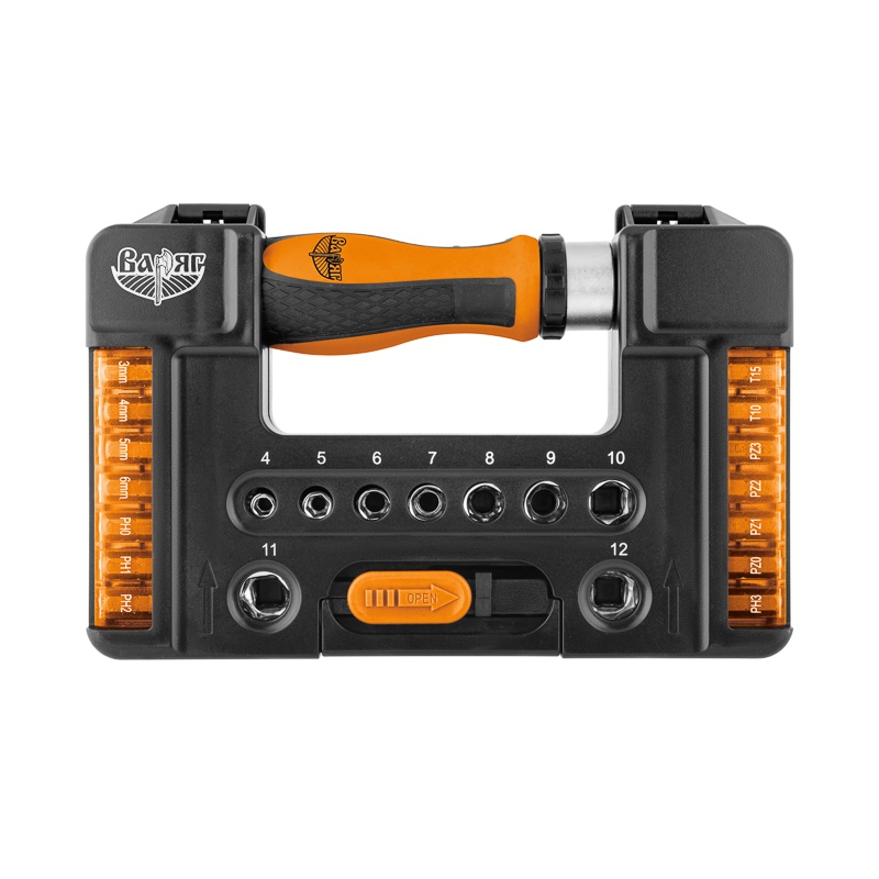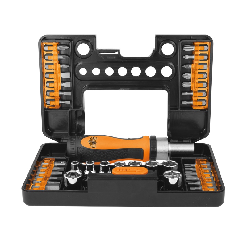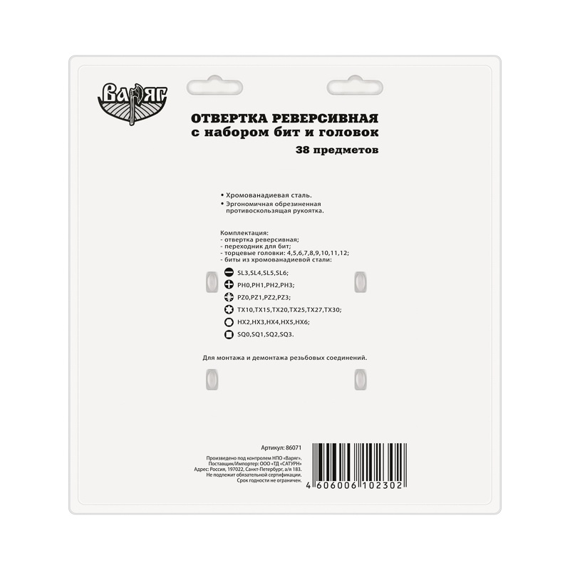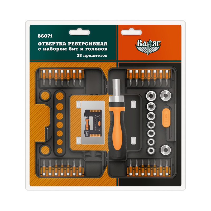 В строительном магазине Сатурн можно купить товар "Отвертка реверсивная Варяг 86071 с набором бит и головок (38 предметов)" по цене от 1517 руб с доставкой за 4 часа по Подольску или оформить самовывоз.