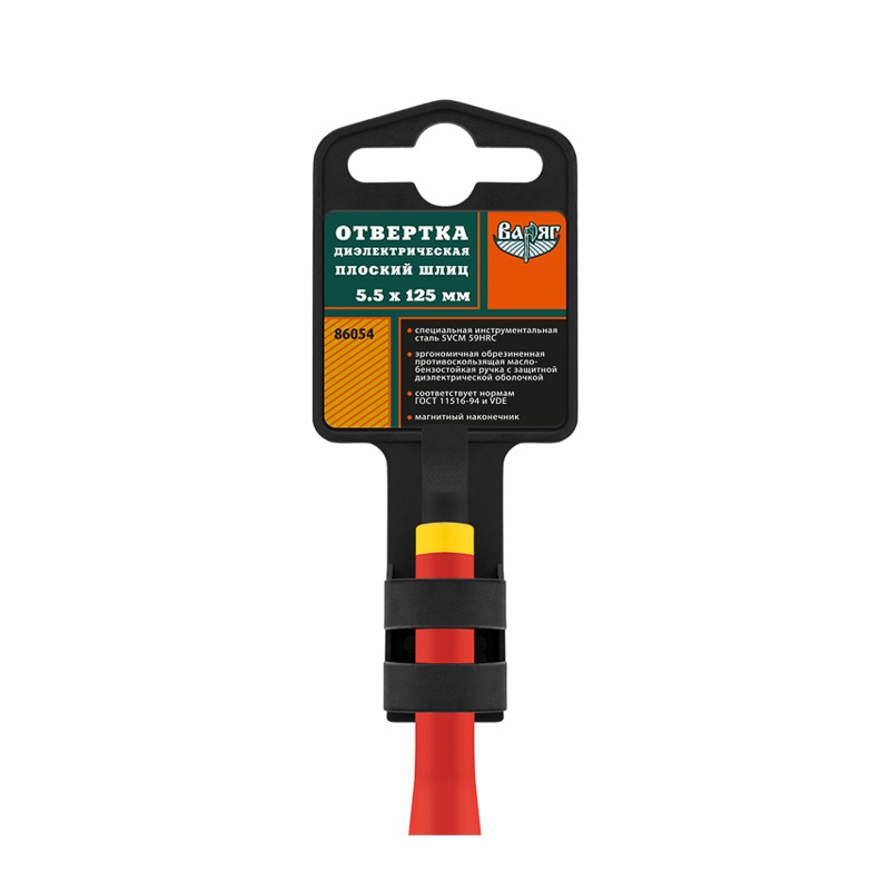 Отвертка Варяг 86054 диэлектрическая 1000В, SL 5,5х125 мм