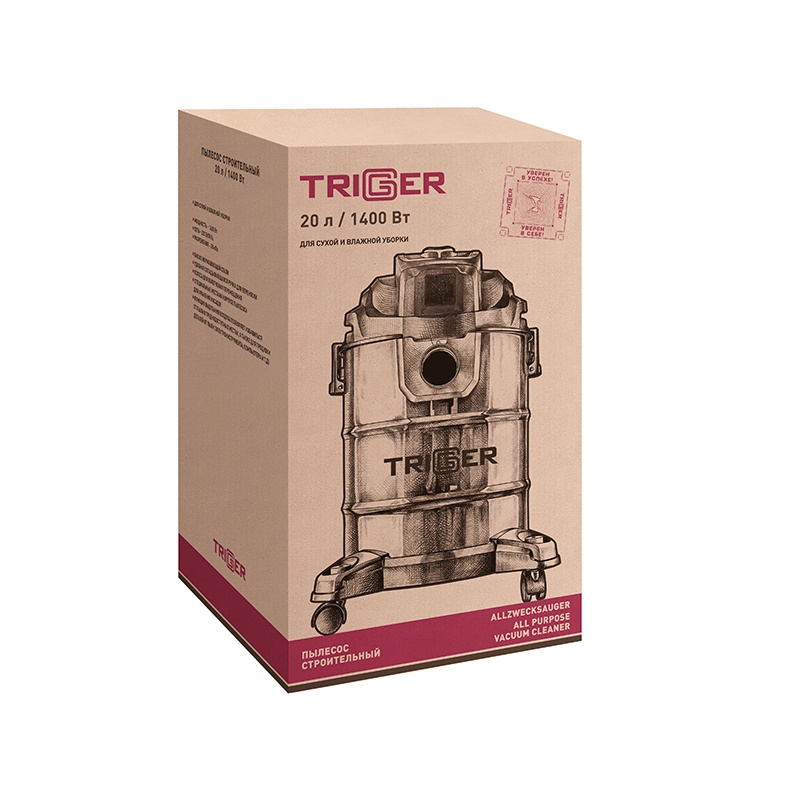 Пылесос строительный сетевой Trigger 20700, 1400 Вт, бак 20 л, кабель 4 м