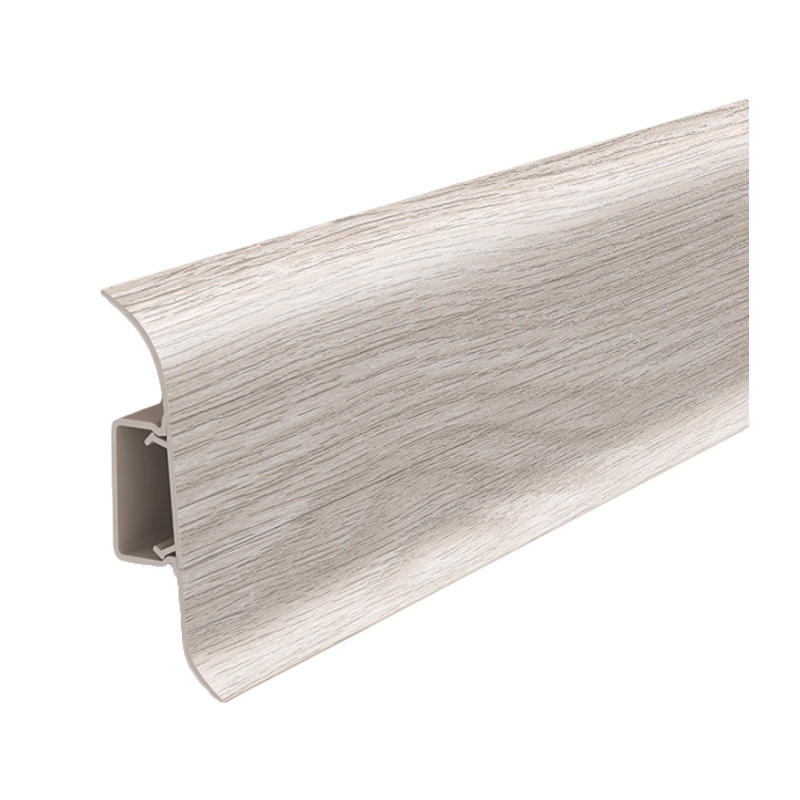Предназначен для отделки, укладывается по периметру помещения между напольным покрытием и стеной. Плинтус имеет кабель-канал, в котором можно проложить силовой, компьютерный, телевизионный и др. кабели. Мягкий обрезиненный край плинтуса предотвращает попадание влаги и пыли между стеной и полом.