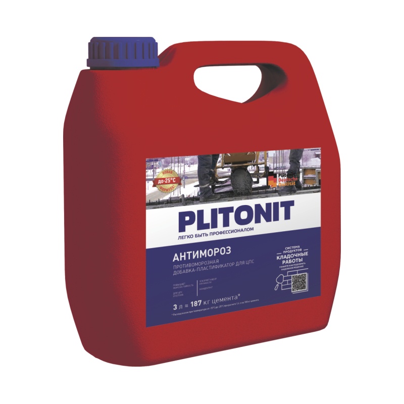 Добавка д/бетонных смесей Plitonit АнтиМороз пластифицирующая до -25°С, 3 л