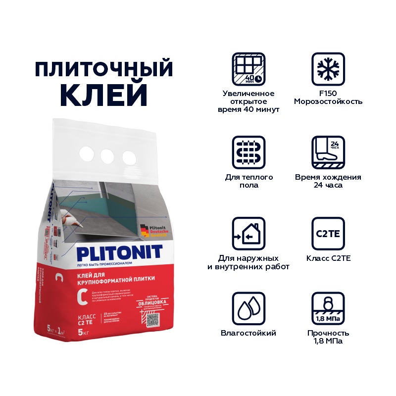 Клей для плитки Plitonit С по сложным основаниям (5 кг)
