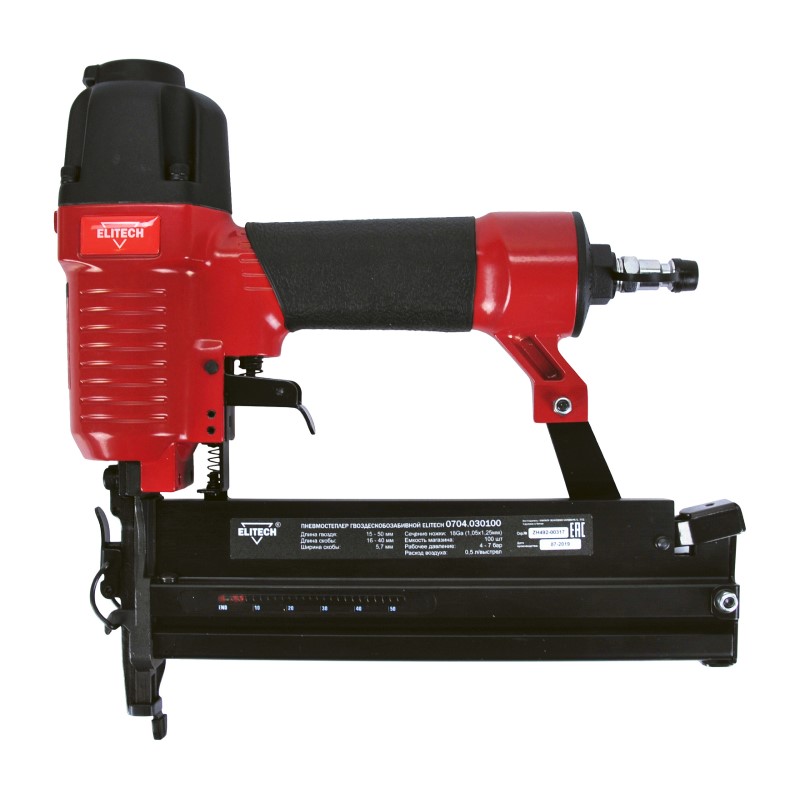 Пневмостеплер гвоздескобозабивной Elitech 030100, 1,05х1,25мм (18GA), гвозди/скобы 15-50/5,7х16-40мм
