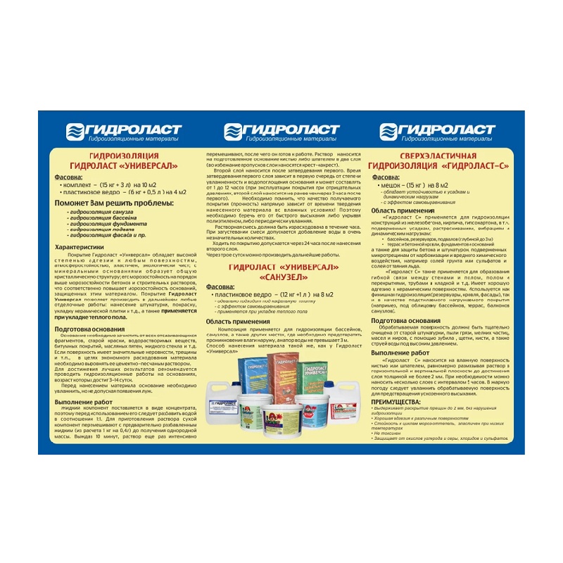 Покрытие гидроизоляц. на цемент. основе Гидроласт Универсал, 15 кг + 3 л