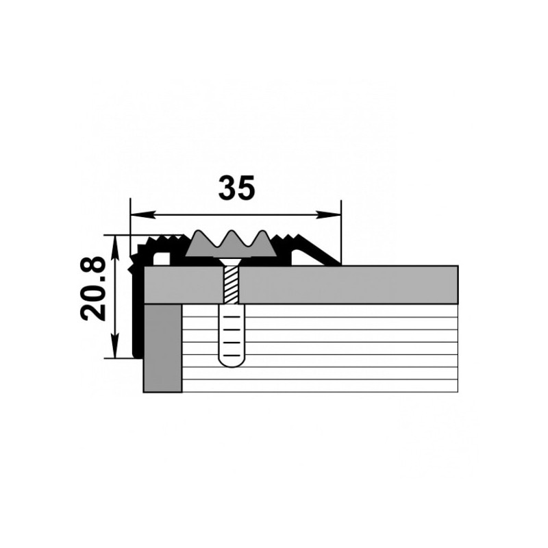 Порог угл. с ПВХ встав. Лука, серебро анод. (0,9 м х 20,8 мм х 35 мм)