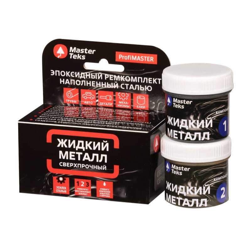 Ремкомплект эпоксидный двухкомпонентный MasterTeks ProfiMaster сверхпрочный, жидкий металл (0,16 кг)