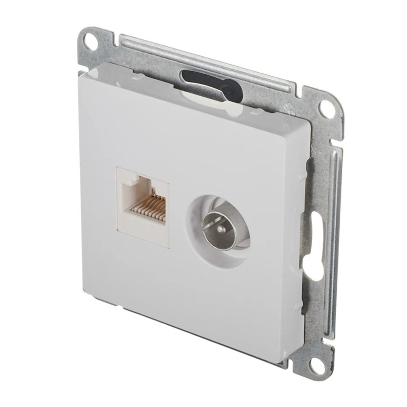 Розетка компьютерная RJ-45 + телевизионная TV с/у Atlasdesign ATN000189, 2 гнезда, белая