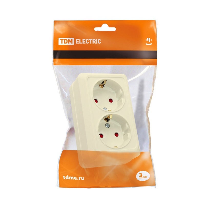Розетка о/у Ладога SQ1801-0066, 2 гнезда, с/з, з/ш, слоновая кость