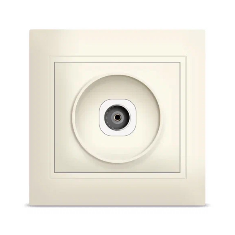 Розетка телевизионная одиночная (тупиковая) скрытой установки серии Севиль — слоновая кость. Предназначена для организации стационарной точки подключения телевизионного кабеля (коаксиального) в жилых и коммерческих помещениях с скрытой проводкой. Идеальна для гостиных, спален, гостиниц и офисов при оформлении аккуратной законченной точки для ТВ и цифрового/кабельного сигнала.