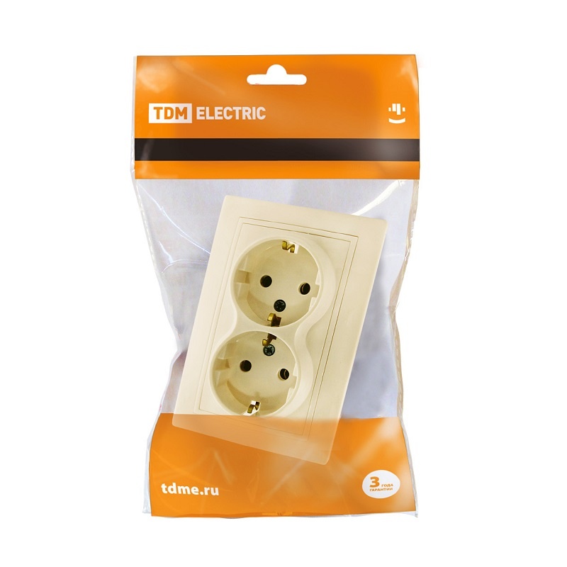 Розетка с/у Таймыр SQ1814-0114, 2 гнезда, с/з, слоновая кость