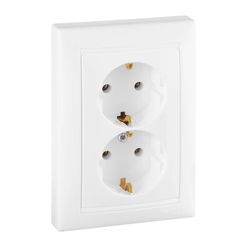 Розетка с/у Valena 694272, 2 гнезда, с/з, 16А, белая