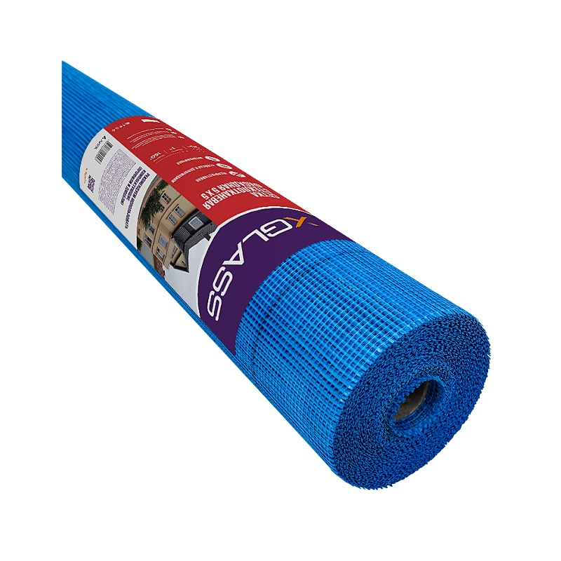 Сетка стеклотканевая фасадная X-Glass 5х5 мм, 1х50 м+/-10%, 160 гр/м2, синяя