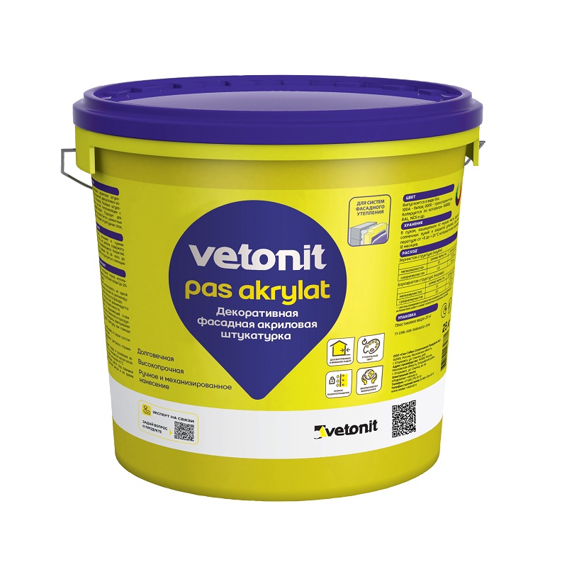 Штукатурка акриловая Vetonit Pas Akrylat шуба 1,5 мм, база А100 белая (25 кг)