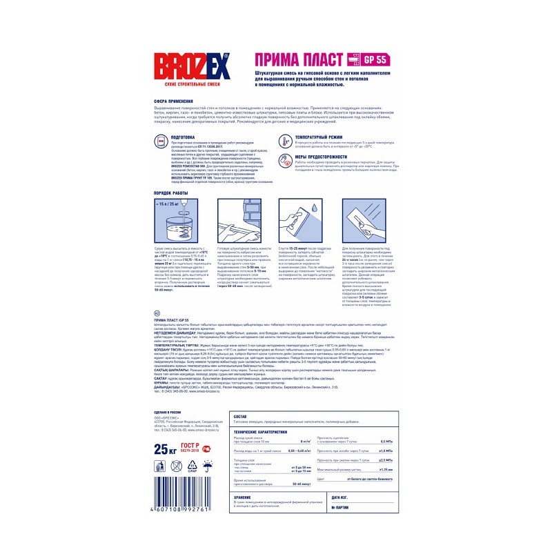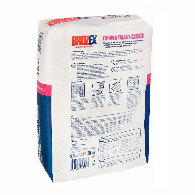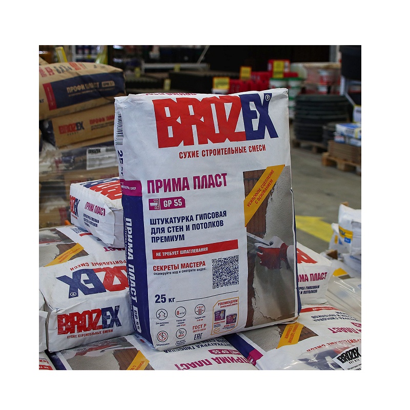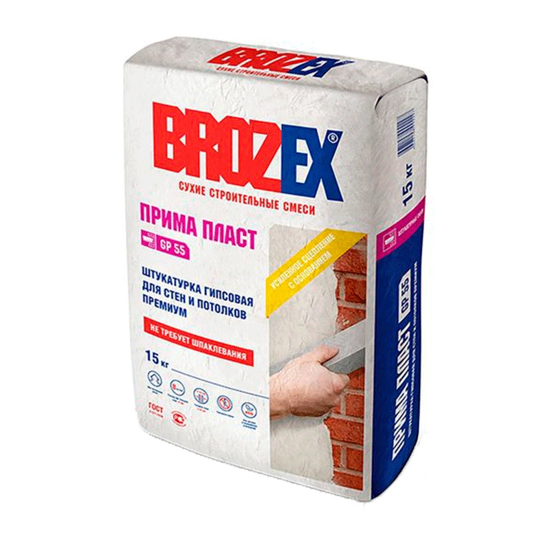 Штукатурка гипсовая для стен и потол. Brozex Прима Пласт GP 55, 25 кг