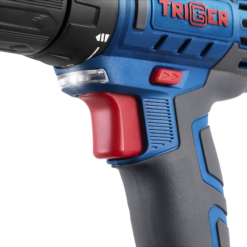 Дрель-шуруповерт Trigger 20102, 2 аккумулятора Li-ion (1,5Ач), 14,4V, 10 мм, 35 Нм, слайдер, кейс