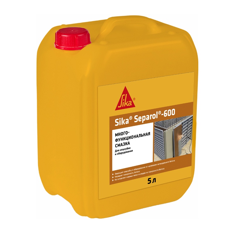 Смазка для опалубки Зика Сепарол-600 предназначена для защиты опалубки от преждевременного износа и коррозии, а также защиты элементов оборудования от налипания затвердевшего бетона. Повышает качество лицевой поверхности бетона, легкая распалубка, простота нанесения, не оставляет следов на бетоне, не содержит растворителей, защита от налипания затвердевшего бетона.