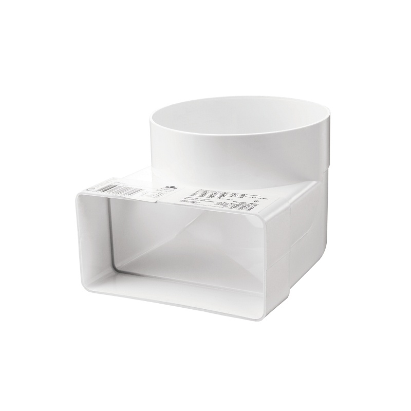 Предназначен для соединения плоского вентиляционного канала с размерами 204х60 мм с круглым вентиляционным каналом диаметром 100 мм под углом 90 градусов