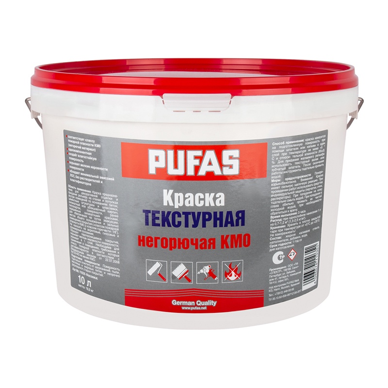 Текстурная негорючая краска Pufas КМ0 немороз. белый RAL 9003 (10 л)