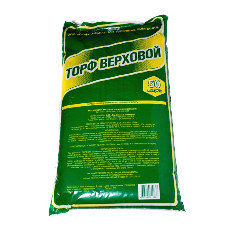Торф верховой кислый, 50 л