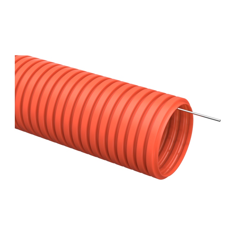 Труба гофрированная ПНД тяжелая с зондом, d=25 мм, оранжевая (50 п.м.)