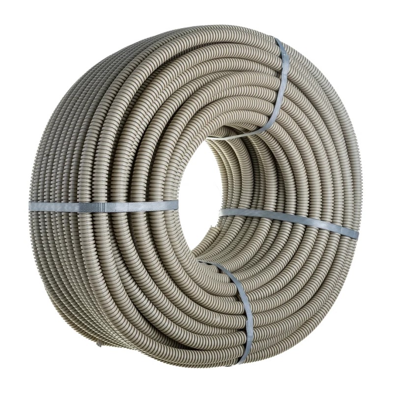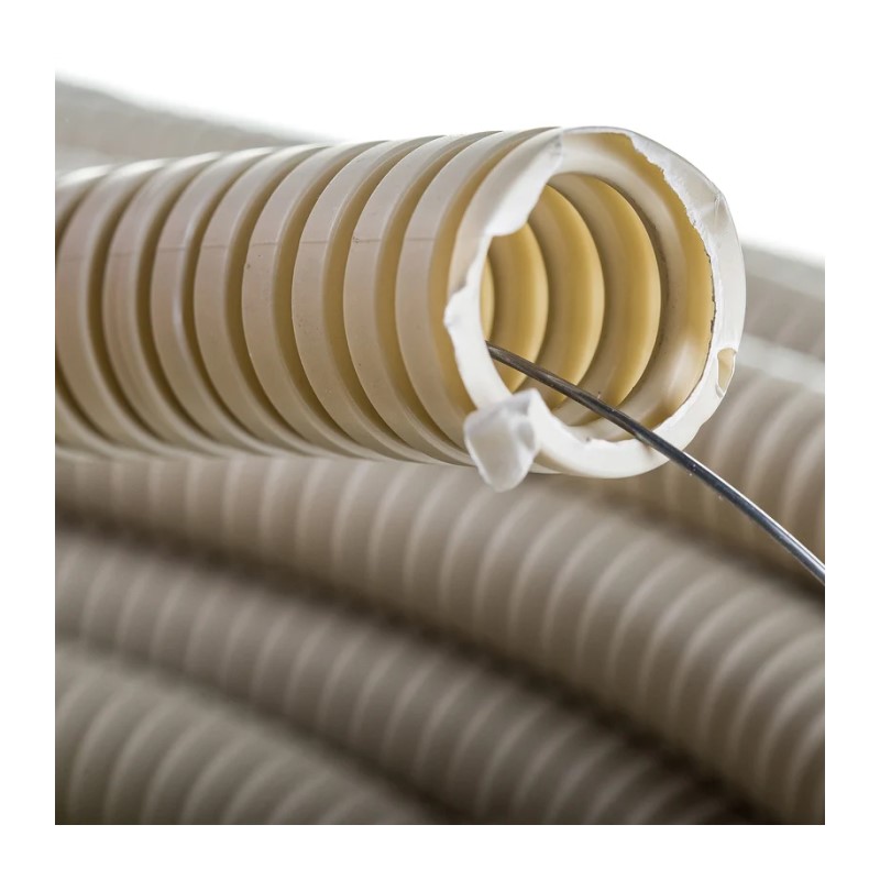 Труба гофрированная ПВХ строительная с зондом, d=20 мм, серая (100 п.м.)