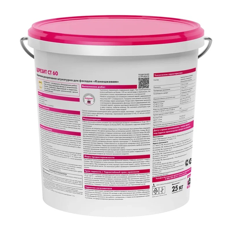 Штукатурка акриловая Церезит CT 60 камешковая 1,5 мм база, 25 кг